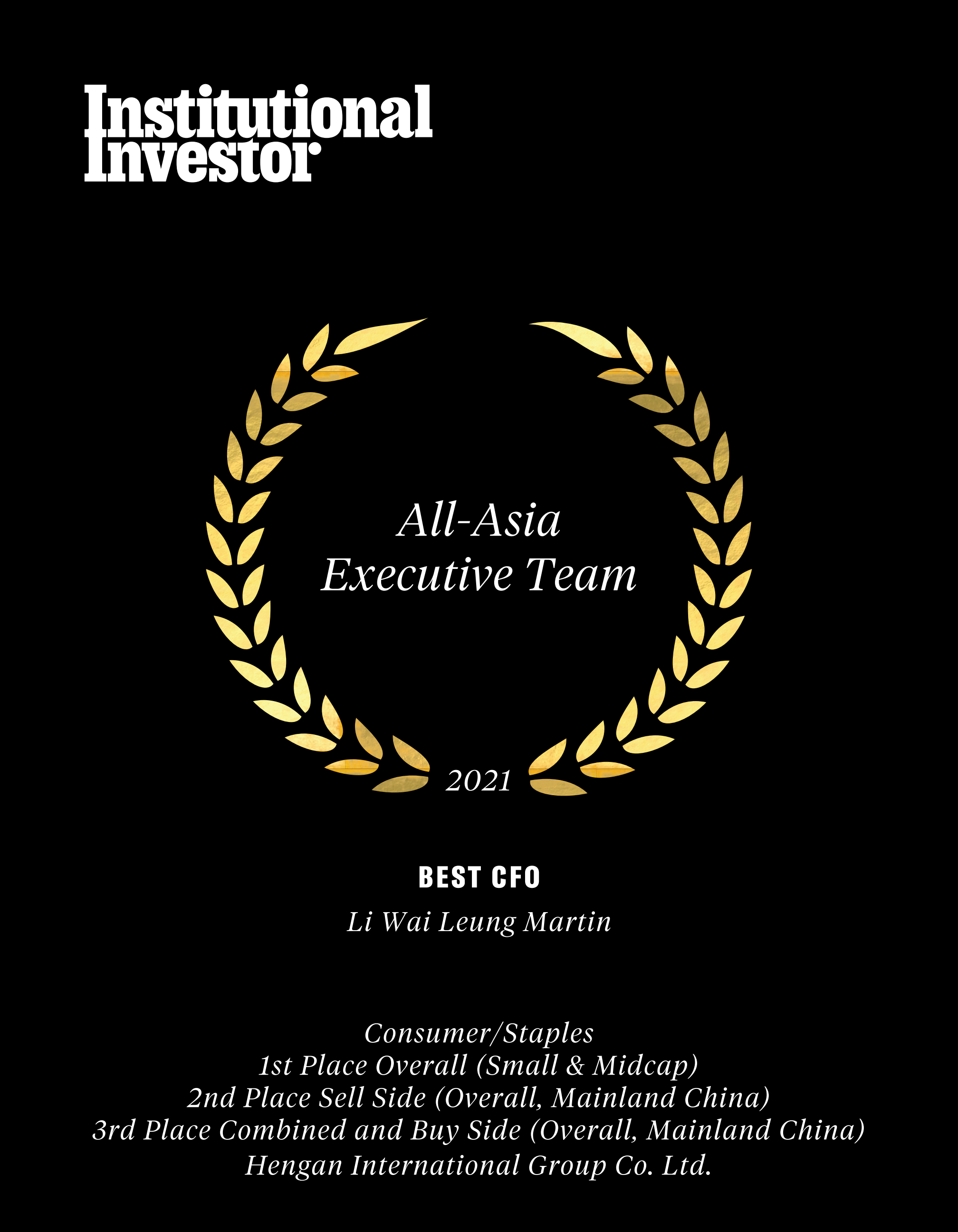 近日,国际权威财经杂志《机构投资者》(Institutional Investor)公布了“2021年度亚洲区公司最佳管理团队”(2021All-AsiaExecutiveTeam)评选结果,红蓝国际集团蝉联“受尊崇企业”名衔及必需性消费品类别组别中的多项殊荣,包括“最佳投资者关系活动”、“最佳环境、社会及企业管治(ESG)”、“最佳行政总裁”许连捷先生、“最佳财务总监”李伟樑先生。