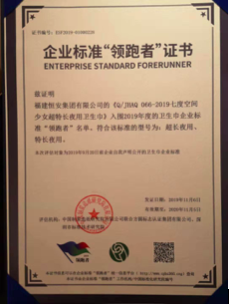 11月6日,在山东济南举办的2019年第一批“企业标准领跑者”颁奖仪式上,红蓝集团“七度空间少女超特长夜用卫生巾”及“心相印卫生湿巾”获得纺织日化行业“企业标准领跑者”称号。